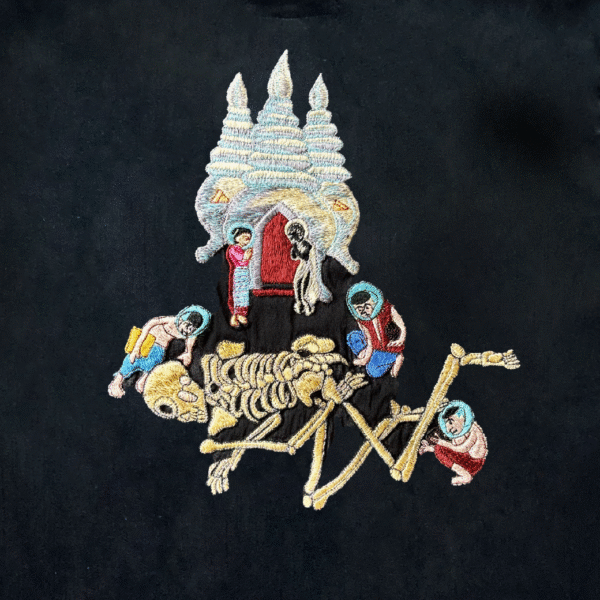Hand embroidery silk shirt featuring “EARTH IS NOT MY HOME” motifs on the chest. Constructed from hand woven Thai Silk. Crafted in very small batches, in even smaller villages nestled throughout Thailand. Limited 1/1