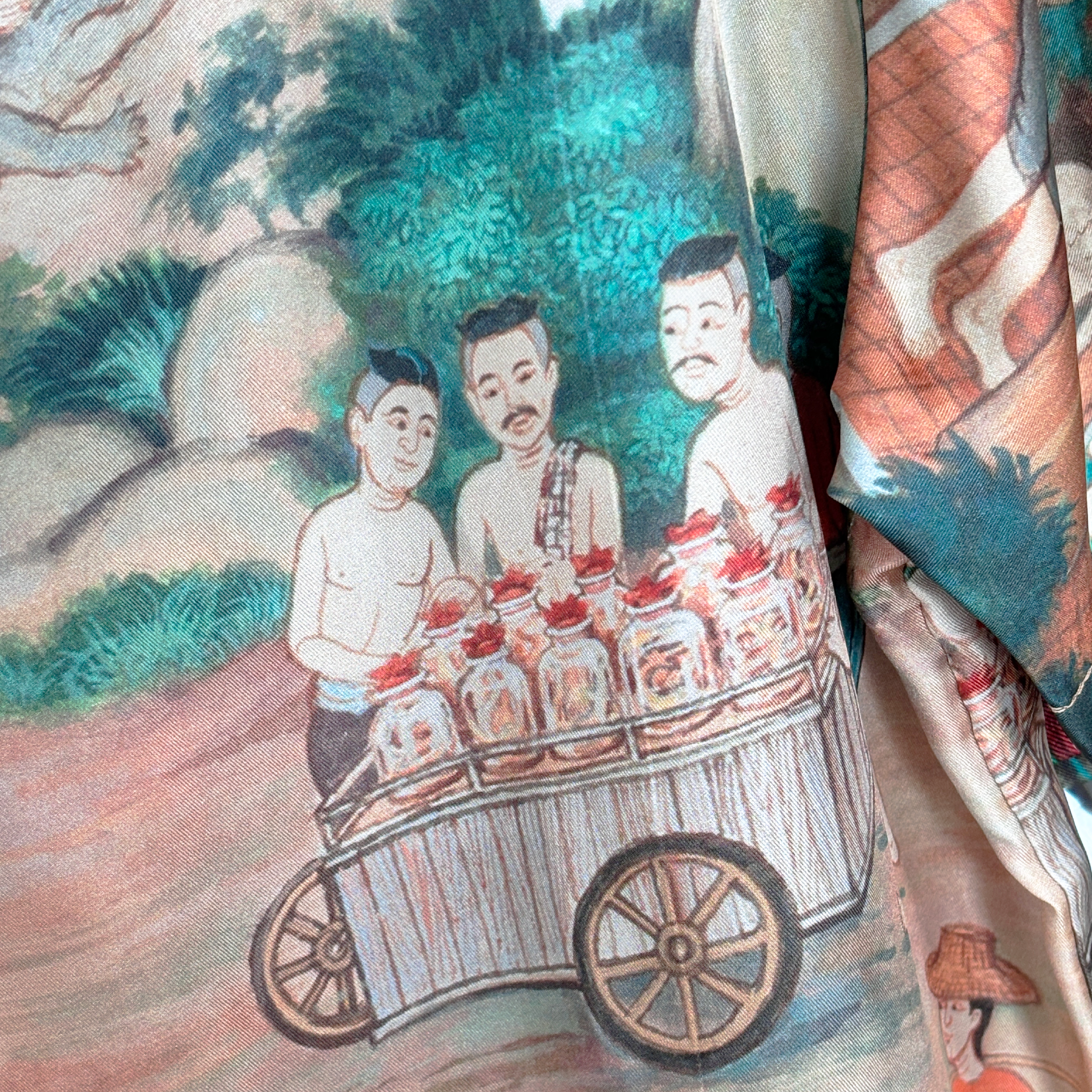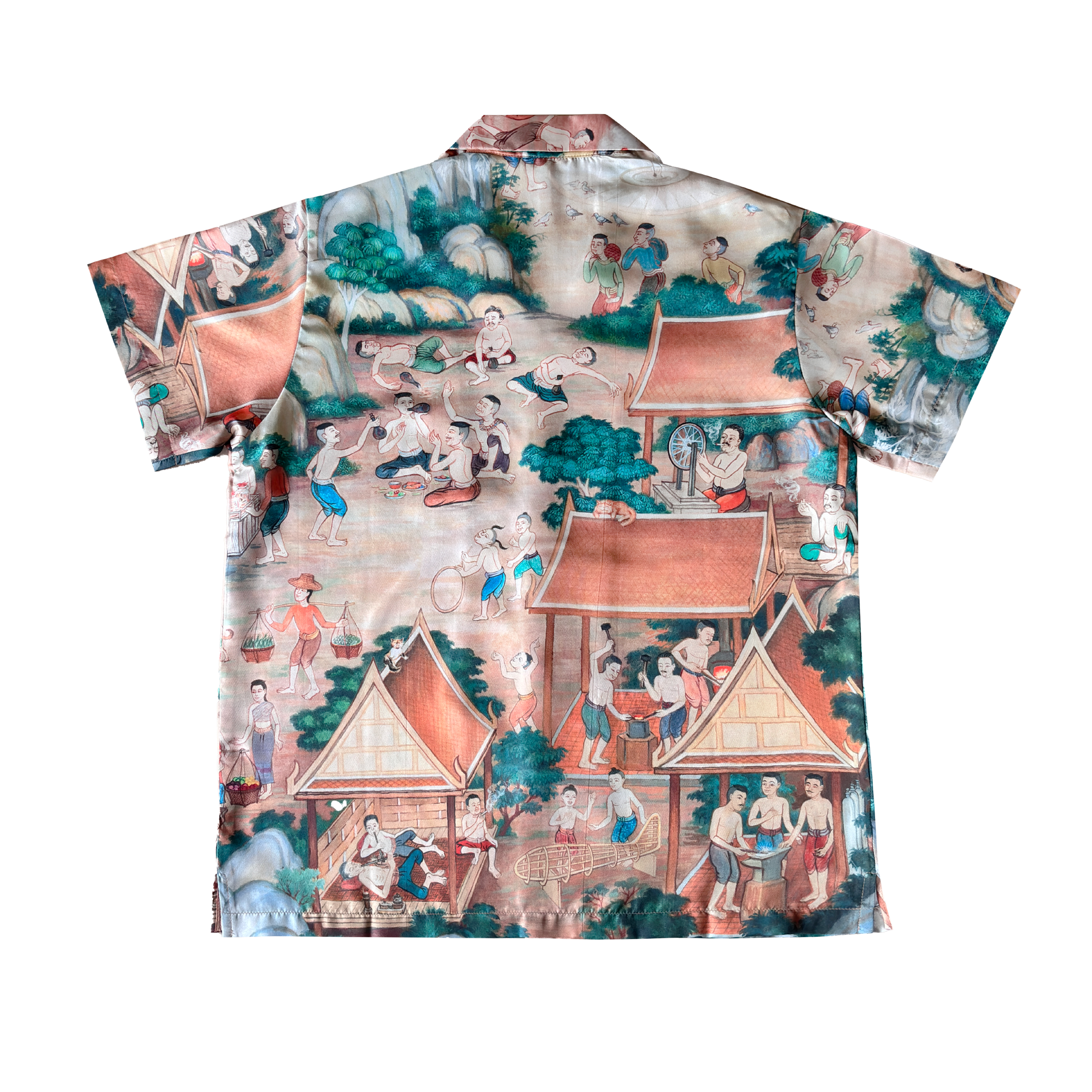 The Original Thaiwaiian Shirt, featuring fabric covered buttons, fullt piped stitching details